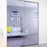 Компоненты двери собираются без рам и с соединениями встык. Отсутствие видимых металлических профилей делает помещение, в котором установлены безрамные стеклянные двери, визуально больше и позволяет проникать большему количеству света. Еще одним преимуществом установки таких решений является то, что они могут быть:
